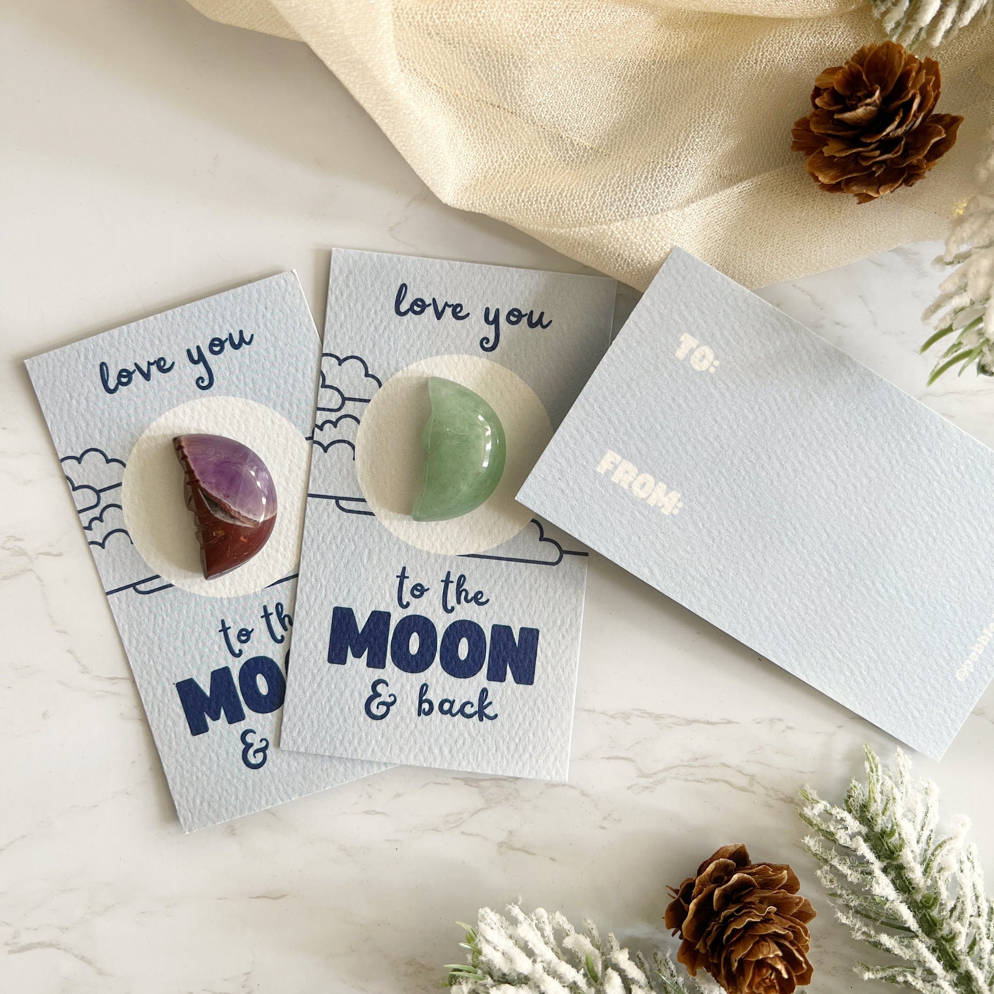 You’ll receive one “Love you to the moon and back” card featuring a carved crystal moon face, approximately 25mm, and will be intuitively chosen just for you. Each piece is unique and carries its own energy.
